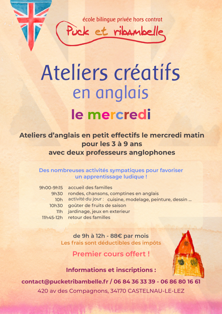 En période scolaire, le mercredi de 9h à 12h des ateliers d'anglais sont proposés aux enfants extérieurs à l'école.