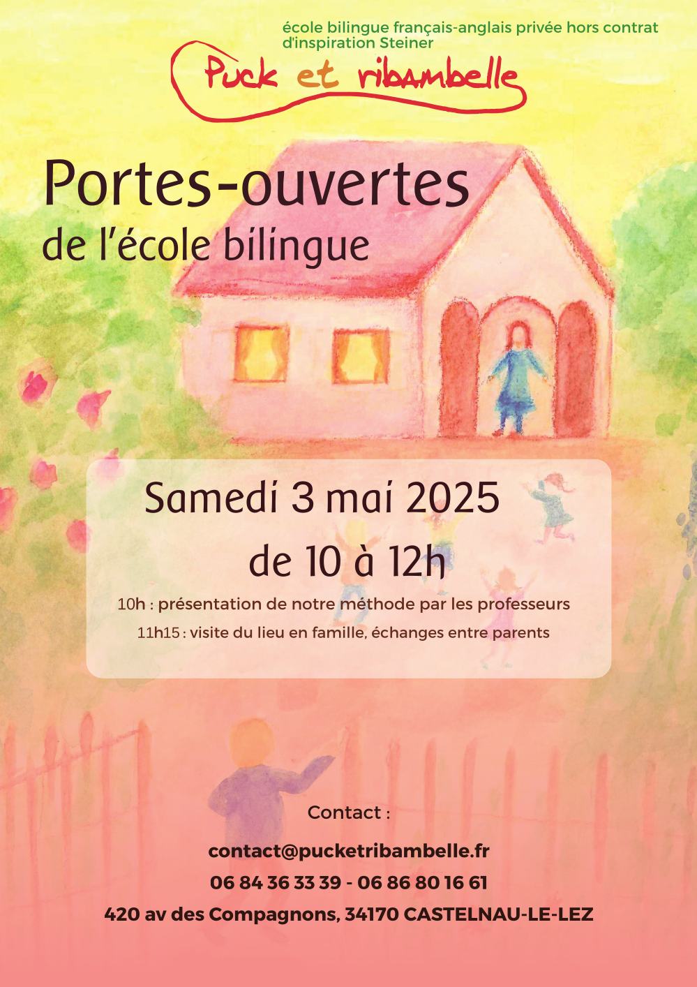L'école Puck et Ribambelle organise des mini portes-ouvertes ce samedi 29/09 de 10h à 12h.